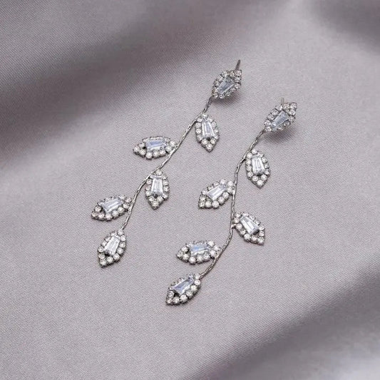 Zirconia Leaf Pendant Earrings in Gold and Silver
