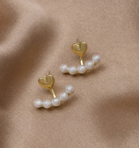 Sale 71.55%Gold Pearl Earrings with Shiny Bow