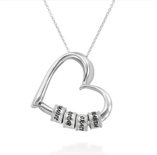 Personalized heart necklace with the option to attach rings and custom name engravings